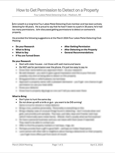He provided the following suggestions at the March 2024 Four Lakes Metal Detecting Club Meeting: